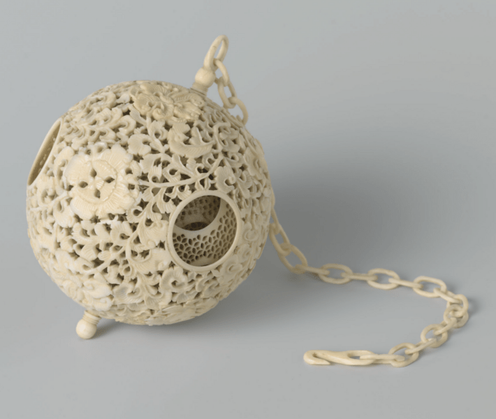 Per la serie ‘voglio una Wunderkammer’, le Chinese Puzzle Balls (sfere a incastro) sono esempi di microintaglio tipici della Cina meridionale (in particolare Canton) tra il XVIII e il XIX secolo. Scolpite a partire da un singolo blocco, al loro interno contengono numerose sfere concentriche, ognuna libera di muoversi indipendentemente.