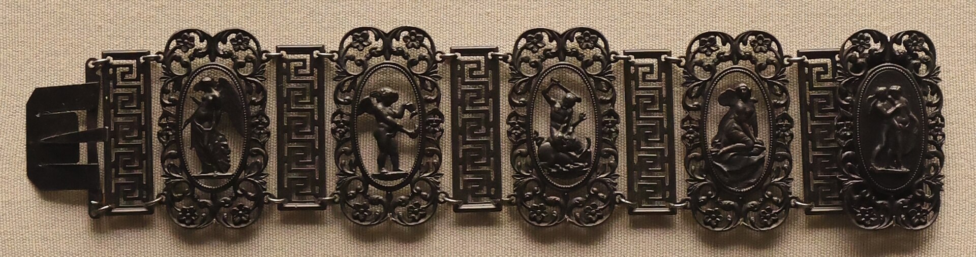 Questi particolari gioielli in ghisa (chiamati in ferro di Berlino) sono nati nei primi anni dell’Ottocento in Prussia. Durante le guerre napoleoniche (1813–1815), il governo prussiano raccolse oro dai cittadini per finanziare la resistenza contro Napoleone. In cambio venivano distribuiti oggetti in ferro, incisi con frasi patriottiche come Gold gab ich für Eisen (“Diedi oro per ferro”). Divennero un simbolo di sacrificio patriottico e presto una moda, indossati da donne dell’aristocrazia e dell’alta borghesia.